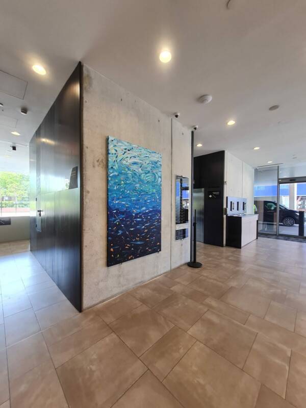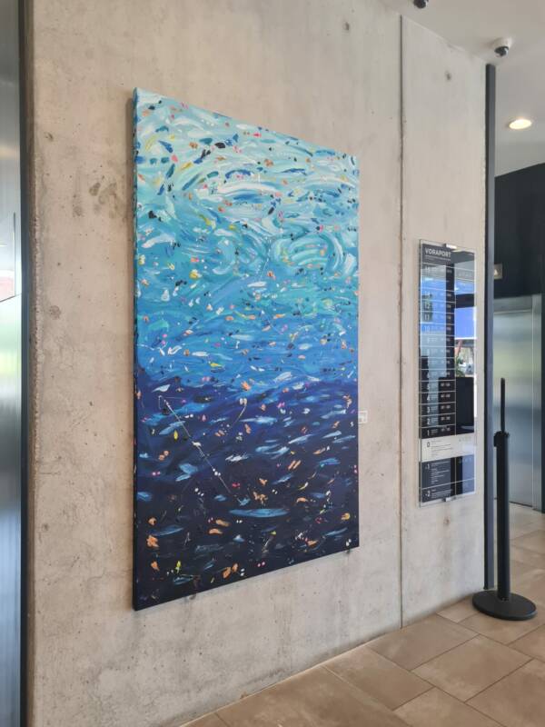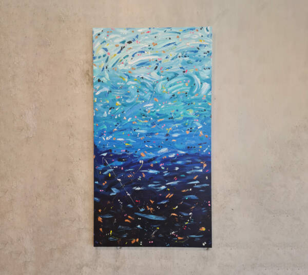 Poblenou es una pintura acrílica sobre tela. Medidas 200cm x 120cm. Bastidor de madera.